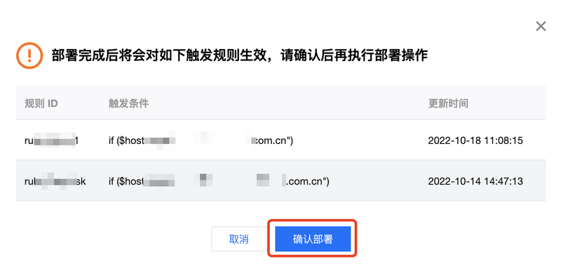 3. 修改代码后单击保存并部署,如此函数已存在触发规则则会提示如下: