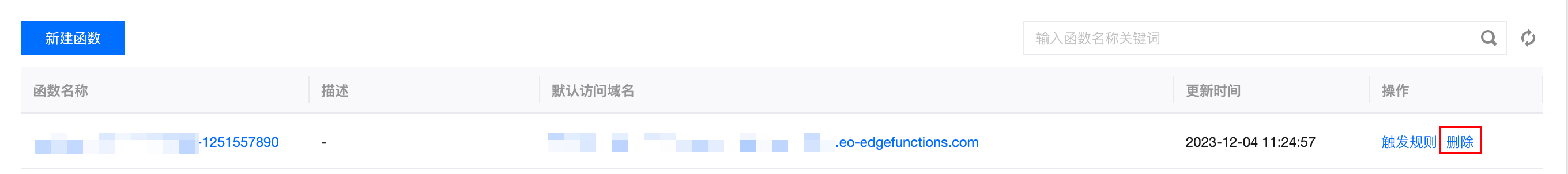 1. 如需要删除已新建的函数,您可在函数管理页面,选择需要删除的函数,单击操作列的删除。