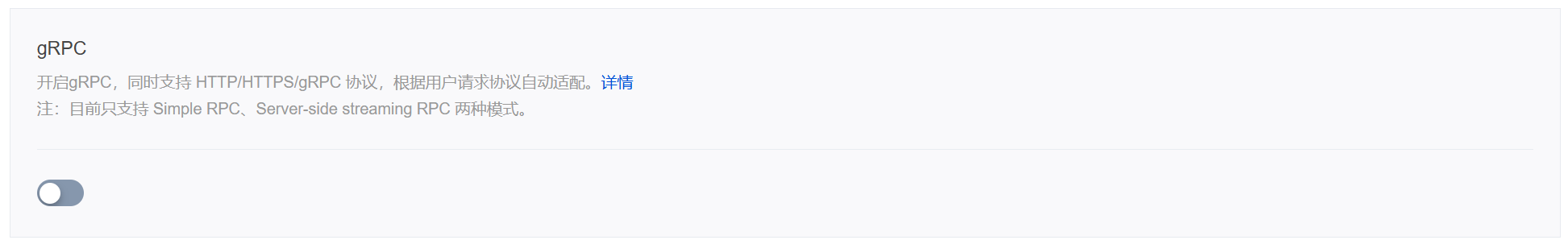 3. 找到 gRPC 卡片,单击开关开启 gRPC 协议支持。