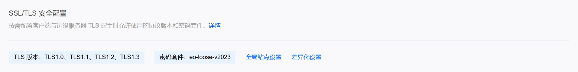3. 找到SSL/TLS 安全配置的卡片,单击全局站点设置进行修改。