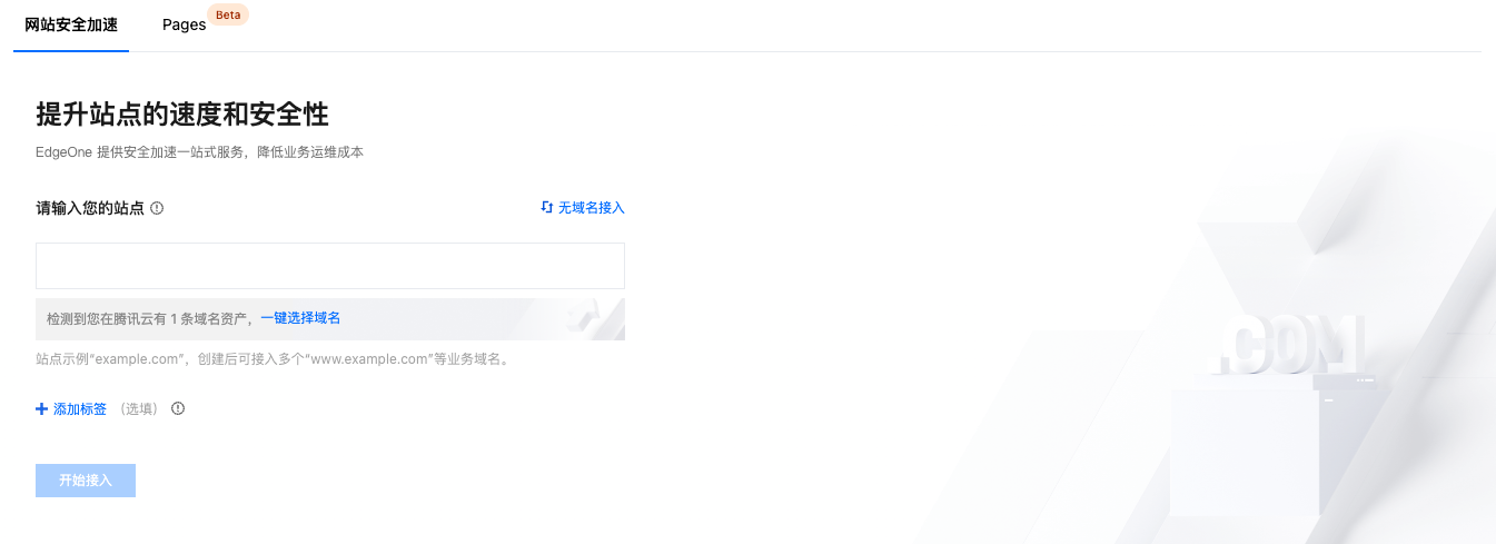 确认完成以上准备工作后,即可开始接入至 EdgeOne 。