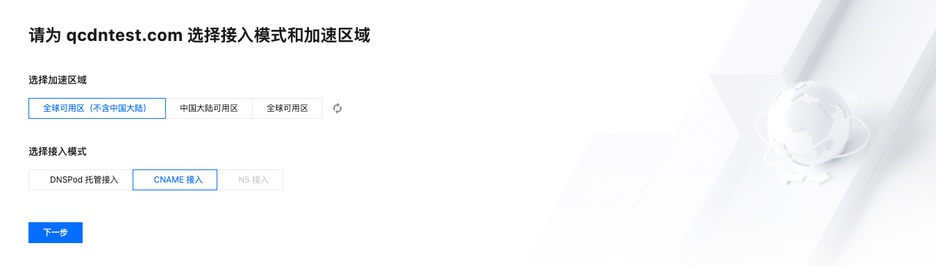 1. 在选择接入模式中,选择 CNAME 接入,单击下一步。