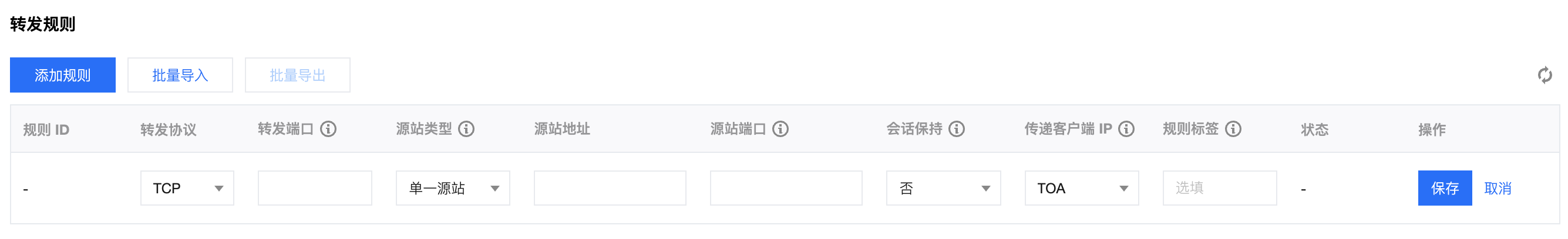 规则标签 | 选填,可输入1-50个任意字符,对转发规则进行标识。 |