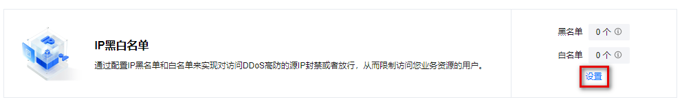 4. 在 IP 黑白名单卡片中,单击设置,进入 IP 黑白名单配置页面。