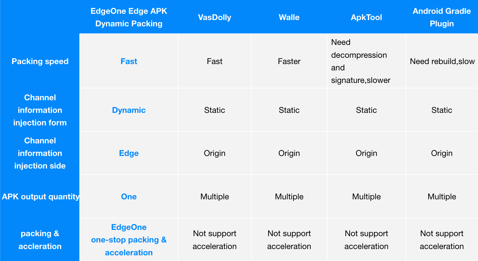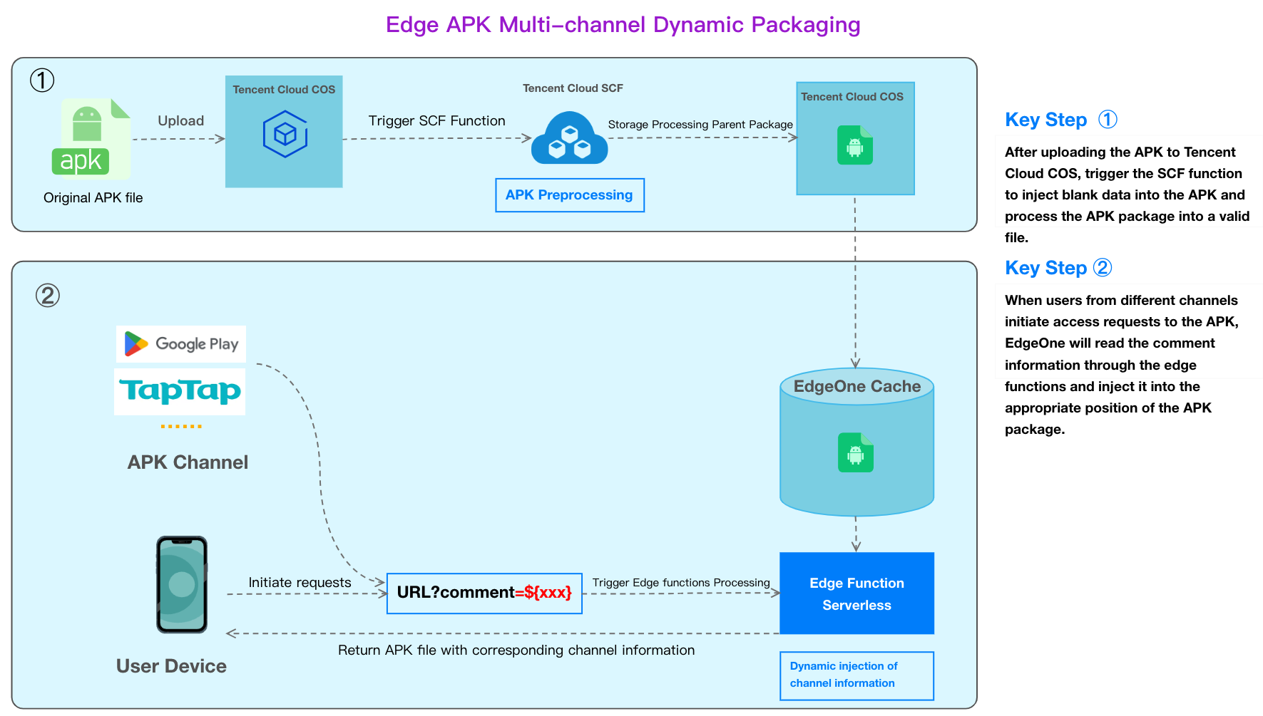 因此 EdgeOne 在上述背景下推出了边缘 Android APK 多渠道的动态打包方案。