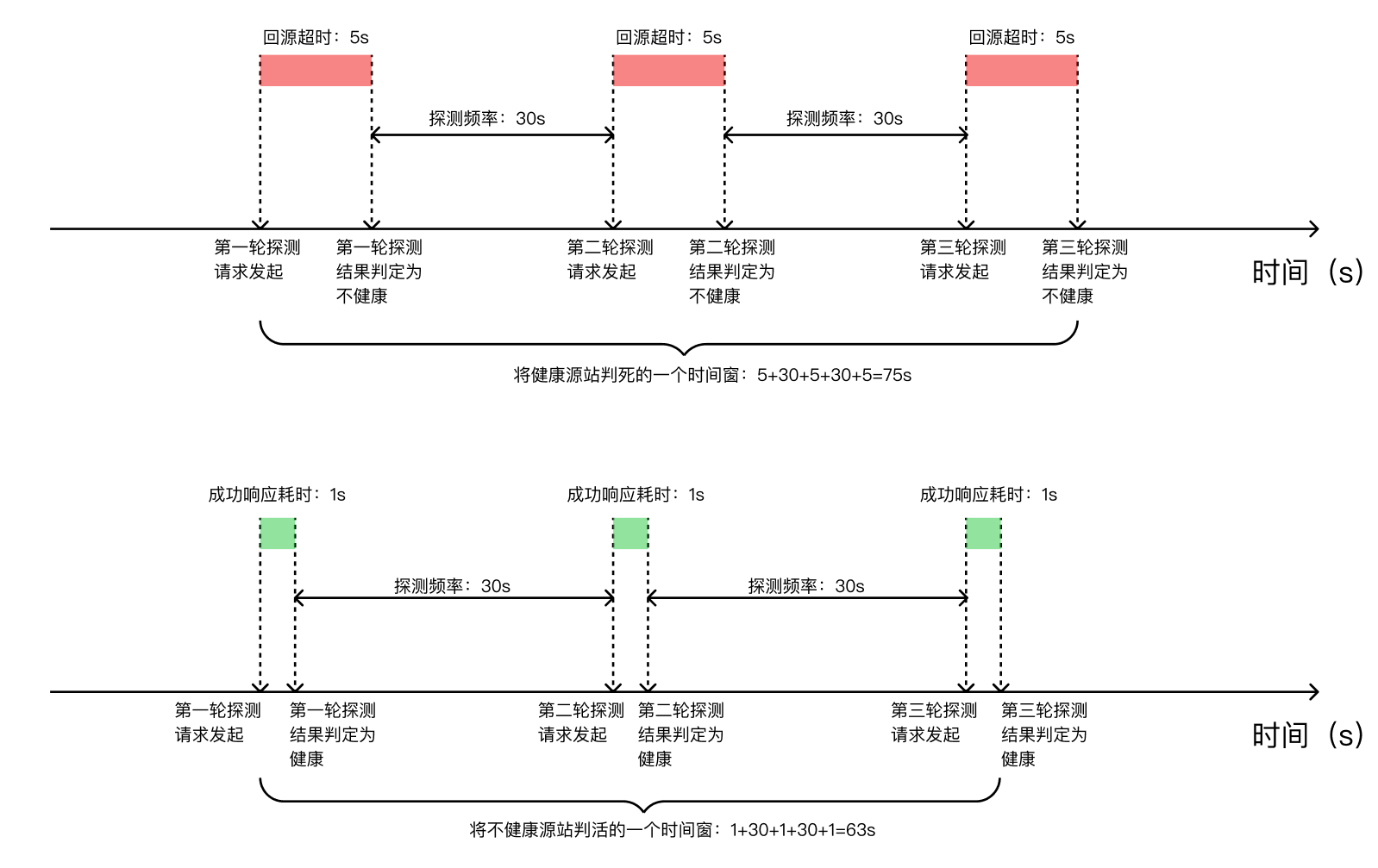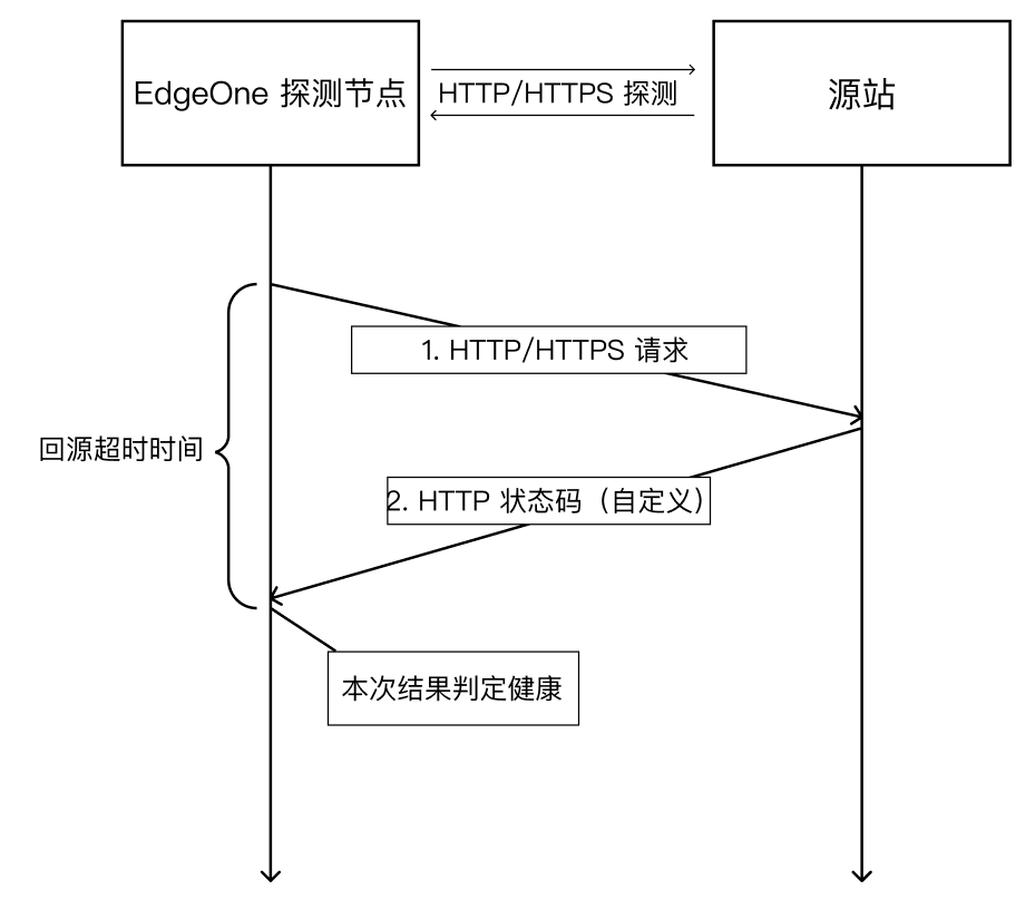 超时时间 | 单次探测请求允许的回源超时时间,大于该时长未响应则被判定为“不健康”,默认为 5 秒,可配置区间为 [1, 30]。 |