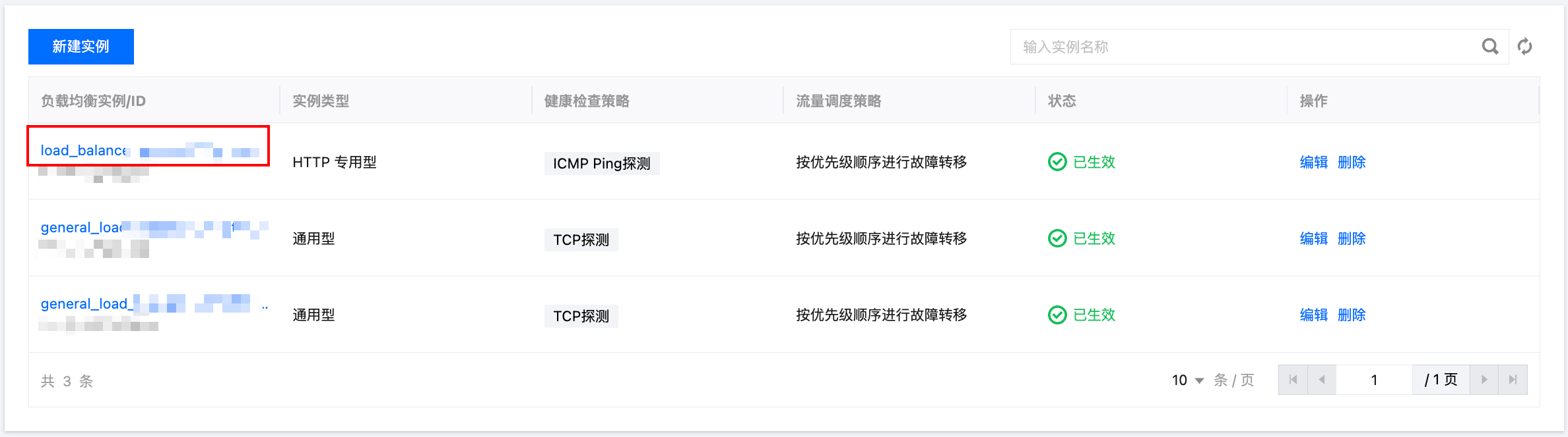 3. 在负载均衡页面,单击所需的负载均衡实例。