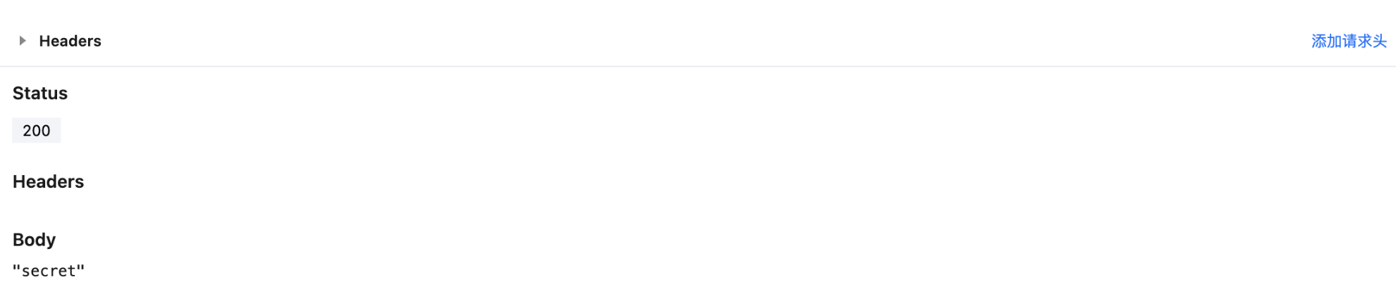 // 入口函数addEventListener('fetch', event => {event.respondWith(handleRequest(event.request));});async function handleRequest(request) {// 从环境变量与密钥获取值,此密钥需在边缘函数环境变量已创建并部署const secretData = env.testSecret;// 创建响应体const response = new Response(secretData, {headers: {'Content-Type': 'application/json'}});// 返回响应return response;}