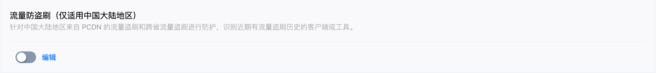 3. 定位到速率限制卡片,单击流量防盗刷右侧的编辑。