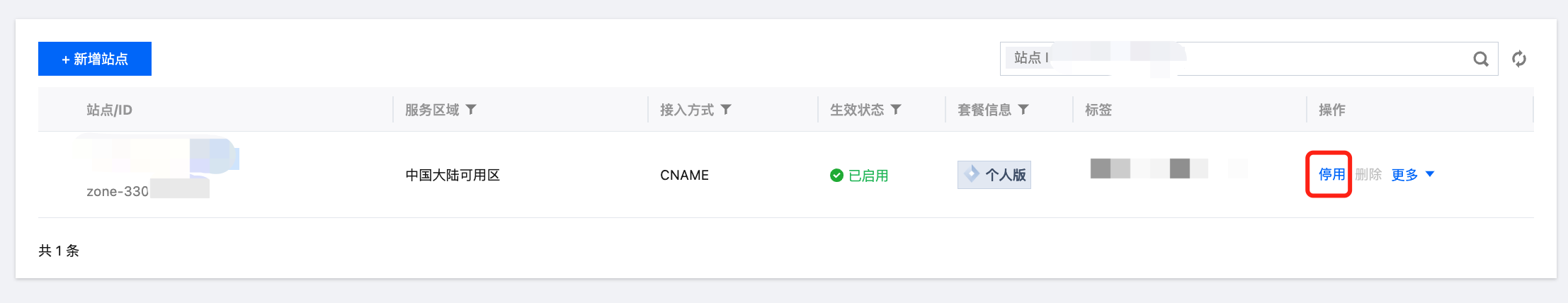 2. 按步骤 1 依次将套餐下的所有站点都进行停用,确认所有站点都停用后进入第 3 步。