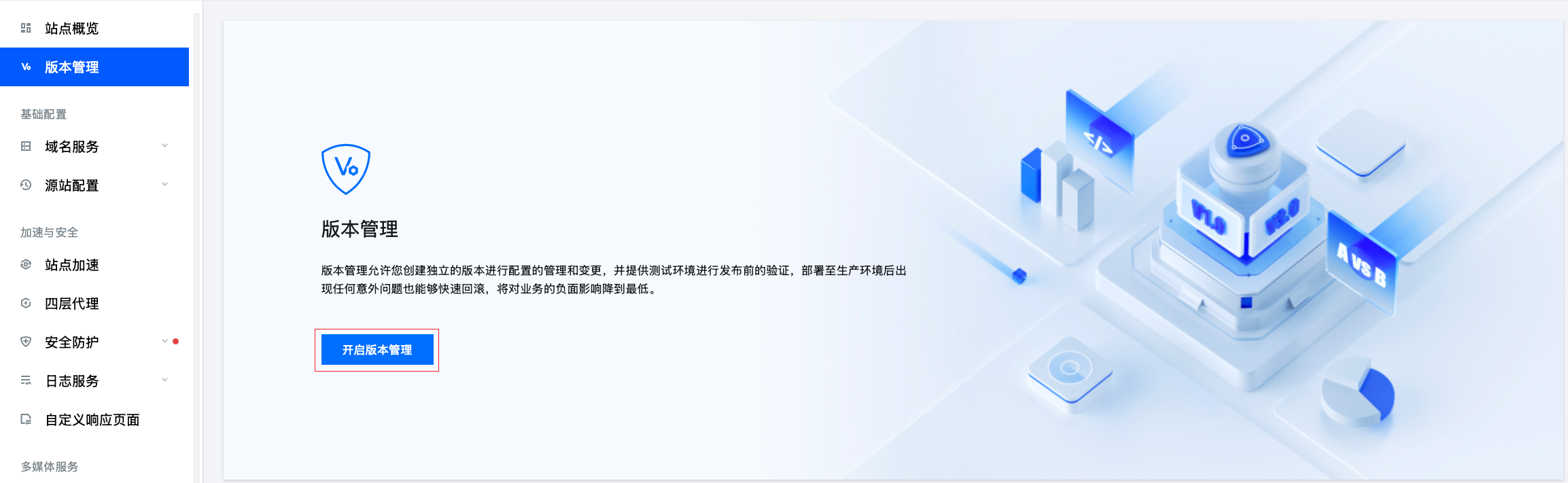 2. 在站点详情页,左侧导航中,单击版本管理。