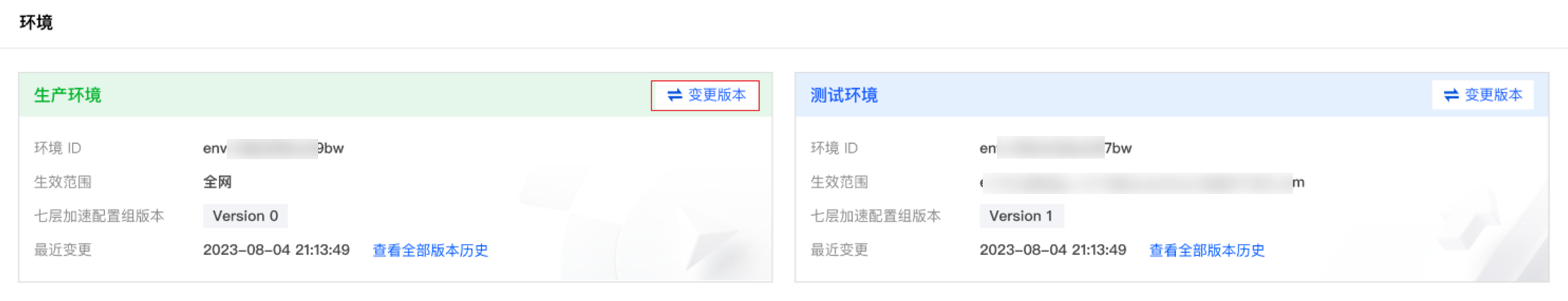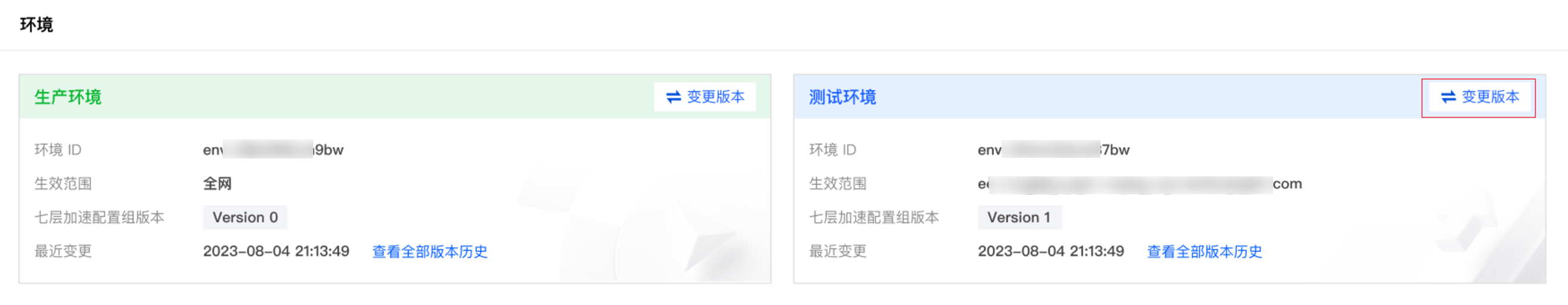 1. 验证测试无误后将版本发布至生产环境,单击生产环境页的变更版本。