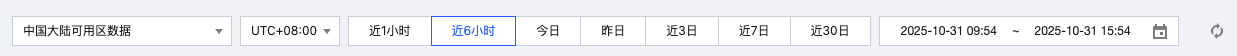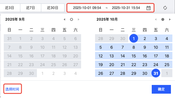 快速查询:通过单击近 1 小时、近 6 小时、今日、昨日、近 3 日、近 7 日、近 30 日等按钮快速查询对应的时间范围数据。
