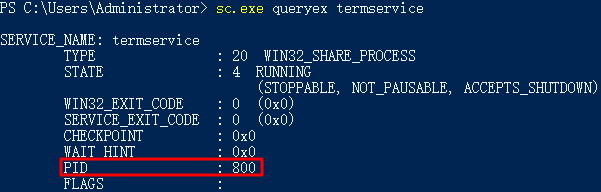sc.exe queryex termservice
