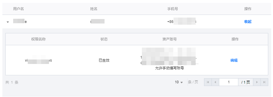 查看能访问某个资产的用户信息和对应的操作权限信息。