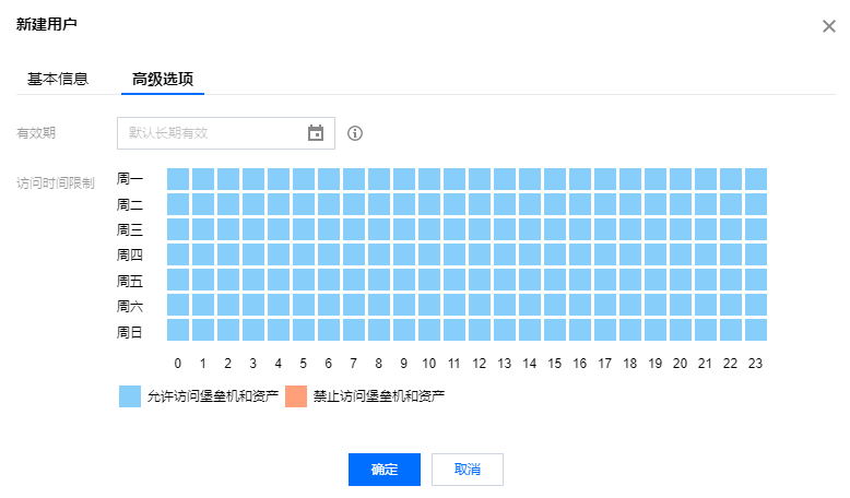 设置用户能够访问堡垒机和资产的时间(以小时为单位)。