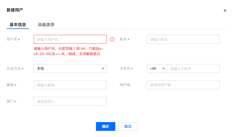选择用户的认证方式,例如本地或 LDAP 。