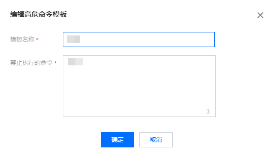 在编辑高危命令模板弹窗,可对模板名称、禁止执行命令进行修改。