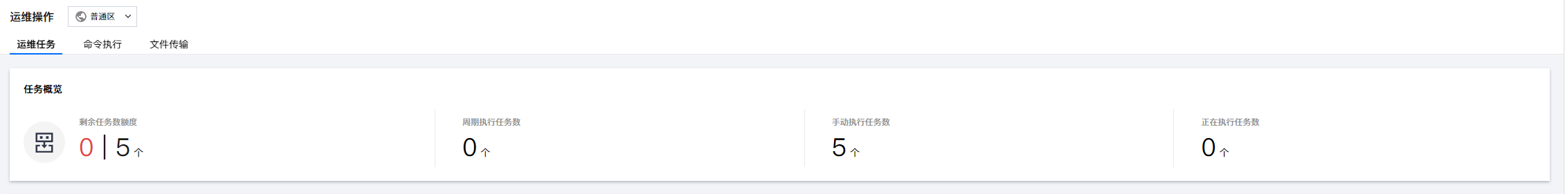 4. 在运维任务页面,可查看运维任务概览,包括剩余任务数、周期执行任务数、手动执行任务数、正在执行任务数。