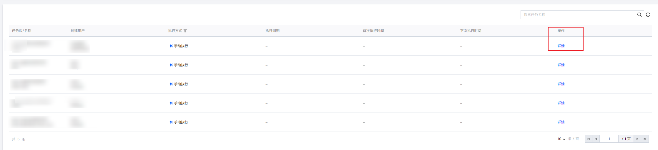 5. 在运维任务页面,详细的记录了运维任务相关信息,包括任务 ID/名称、创建任务用户、执行方式、执行周期、首次执行时间、下次执行时间。