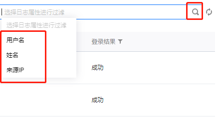 在搜索框中输入用户名、姓名或来源 IP,单击