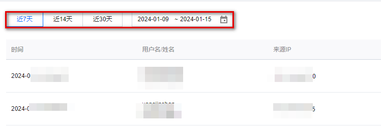在登录日志页面,您可以单击“时间”切换,查看不同时间段的用户登录情况。