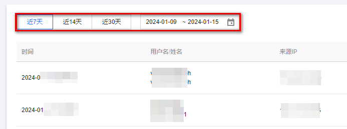 在操作日志页面,您可以单击“时间”切换,查看不同时间段的操作记录。