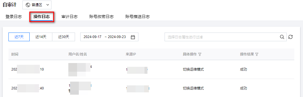 2. 在左侧导航栏中,选择自审计 > 操作日志。