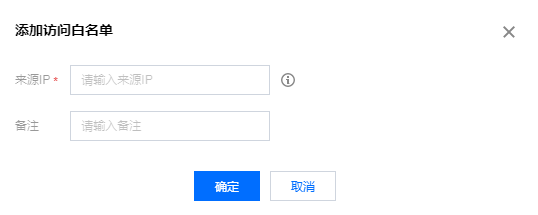 4. 在白名单设置页面,单击添加,弹出添加访问白名单弹窗,需配置如下信息: