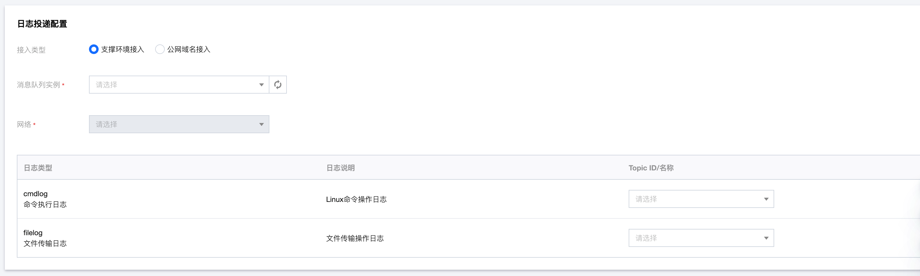 选择日志投递的消息队列实例。