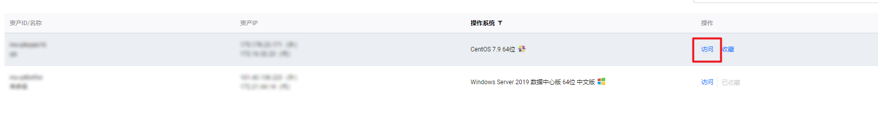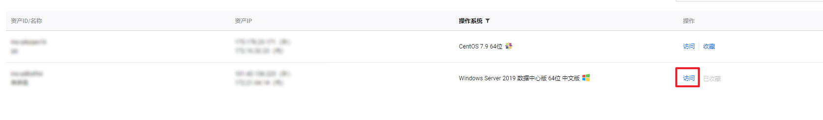3. 在资产列表页面,单击对应主机右侧的访问。