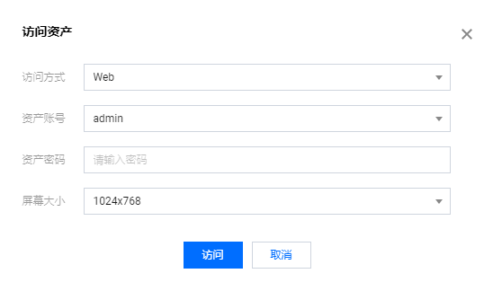 4. 在访问主机弹窗,选择 Web 访问方式,选择需要访问的资产账号、资产密码,然后单击访问,即可通过 H5 的方式访问Windows主机。