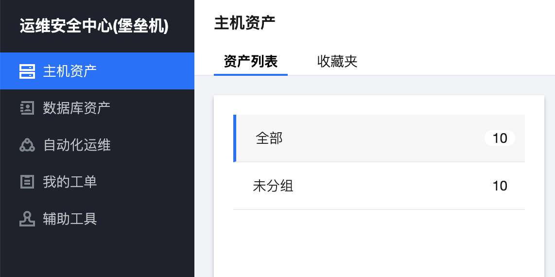 2. 进入堡垒机之后,在左侧导航中,选择主机资产 > 资产列表。