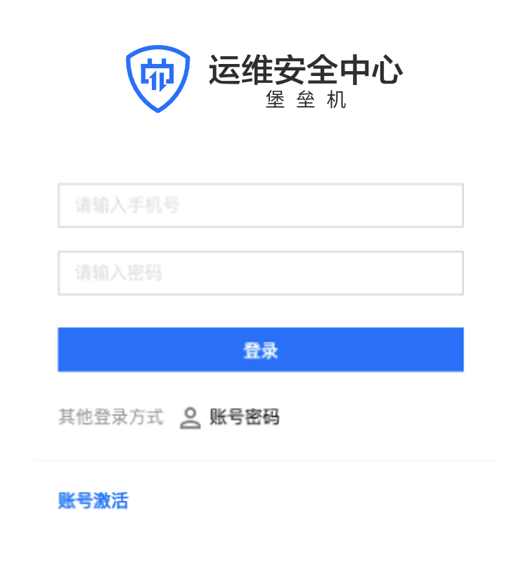 1. 在浏览器中输入运维页面登录地址,打开堡垒机运维页面;输入手机号、密码登录堡垒机;也可以单击账号密码切换到账号名、密码方式登录。