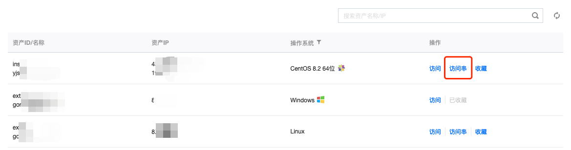 3. 在主机列表页面,单击对应主机右侧的访问串,弹出访问串对话框。