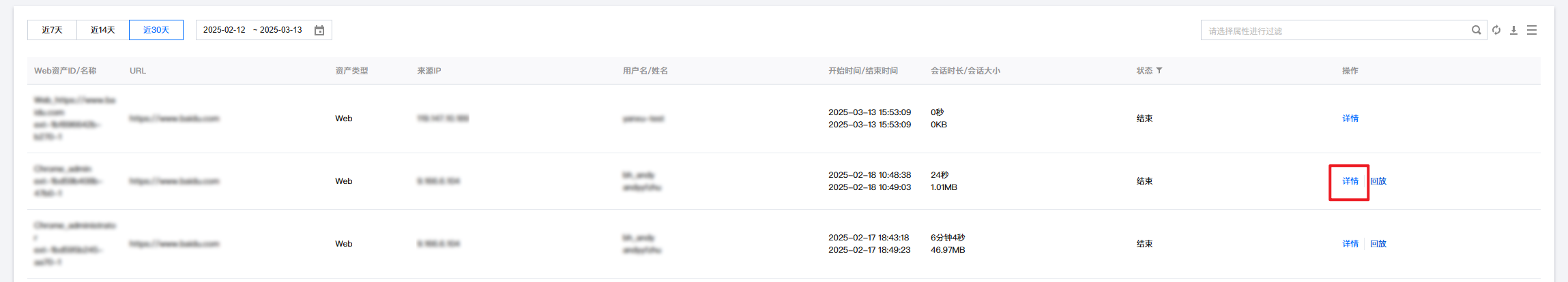 4. 在Web应用会话页面,单击对应会话右侧的详情,可打开会话详情页面。