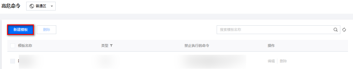 3. 在高危命令页面,单击新建模板。