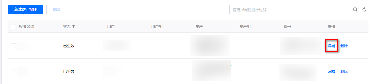 3. 在访问权限页面,单击对应访问权限右侧的编辑。