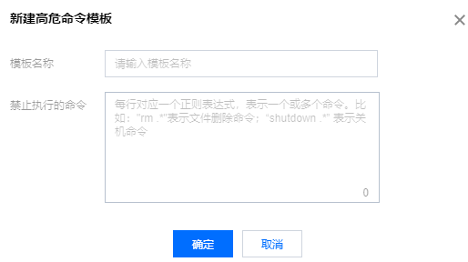 4. 在新建高危命令模板弹窗中,设置对应的模板名称和禁止执行的命令。