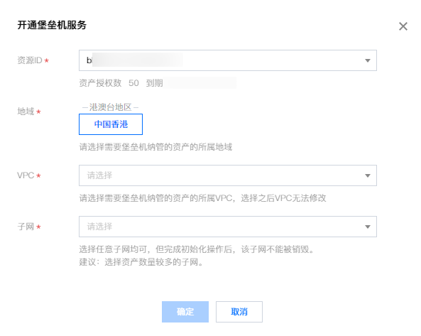 VPC:请选择需要堡垒机纳管的资产的所属 VPC,选择之后 VPC 无法修改。