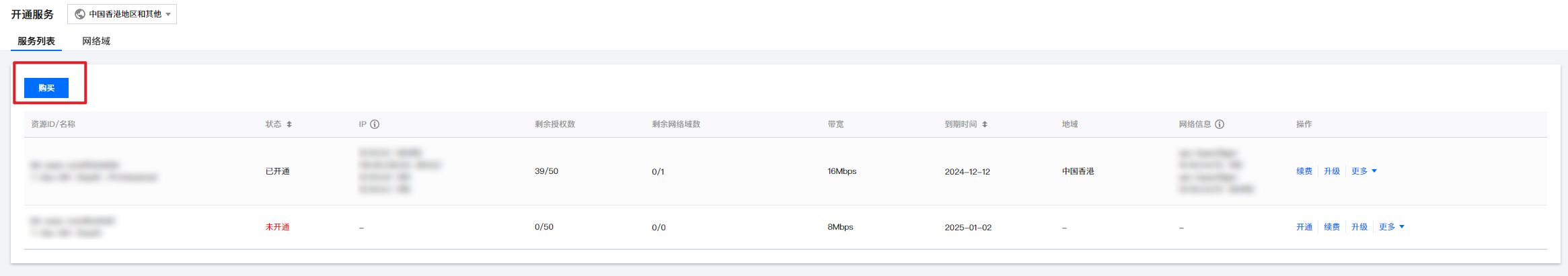 3. 在开通服务页面,单击购买,进入购买页面,选择合适的规格进行购买。