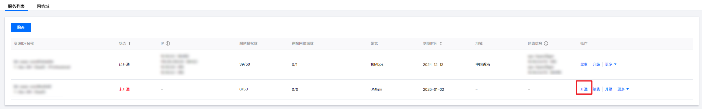 4. 购买完成之后,返回开通服务页面,找到新购买的堡垒机服务,单击开通。