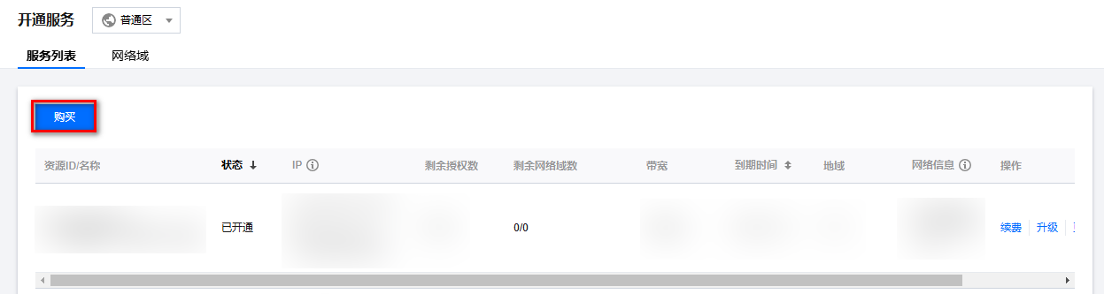3. 在开通服务页面,单击购买,购买多个服务。