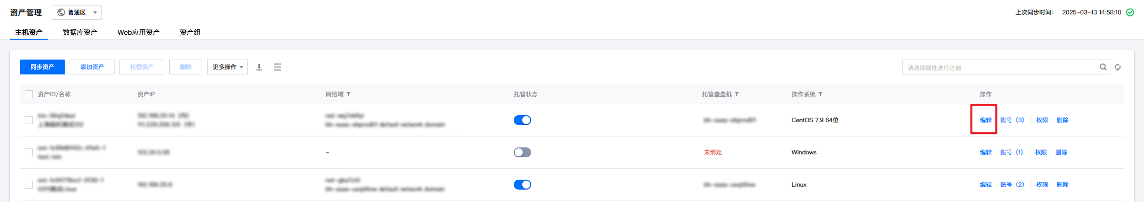 8. 在堡垒机的 主机页面,单击编辑,检查资源端口号配置,确认为在使用远程桌面端口,如果不正确请根据实际情况进行修改。
