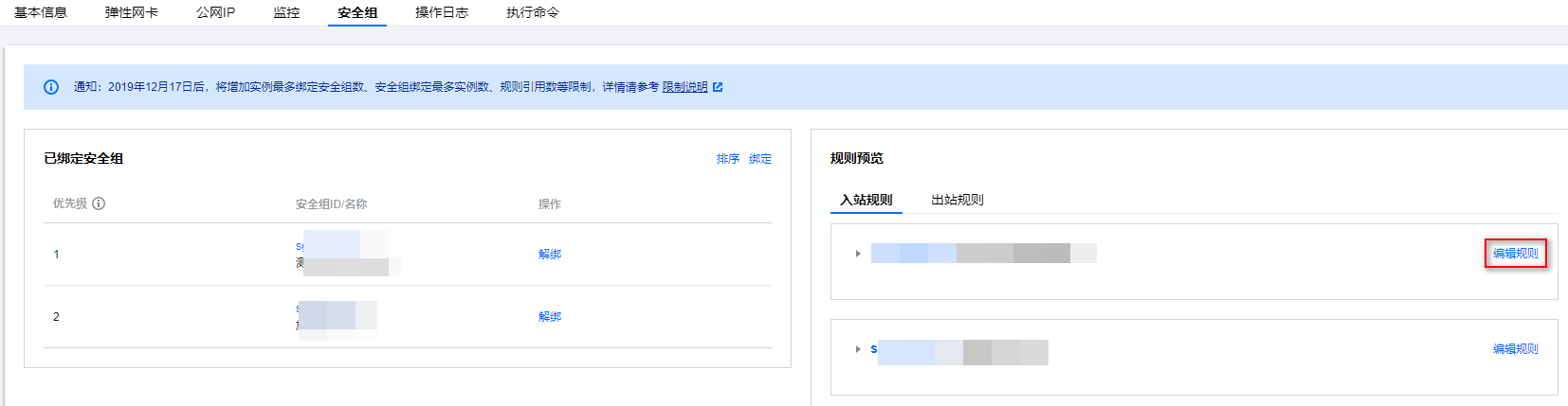 6. 在安全组页面,单击编辑规则,进入私有网络的安全组规则的入站规则页面。