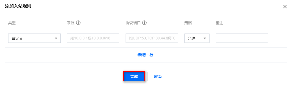 增加:单击添加规则,配置相关参数,单击完成。