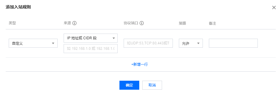 站规则页面,可增加或修改入站规则,允许堡垒机内网 IP 访问资源 SSH 远程端口。 说明: