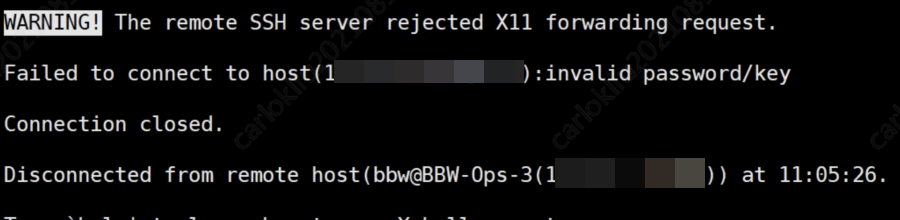 访问 Linux 资源,使用选择远程工具进行登录,提示“invalid password/key”,如下图所示: