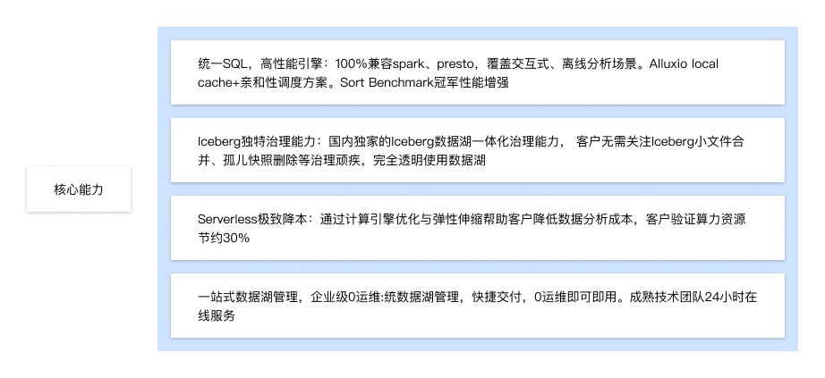 面向跨湖仓一体架构的统一 SQL 分析及批作业处理,通过一套统一的数据湖架构完整支持企业级 BI、机器学习及数据科学场景。