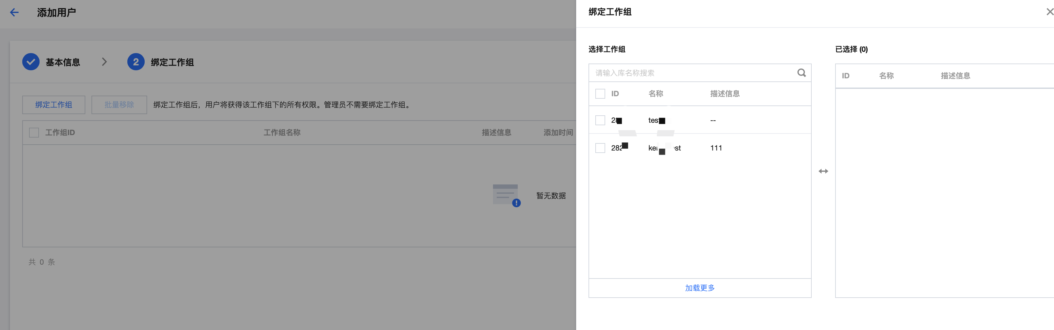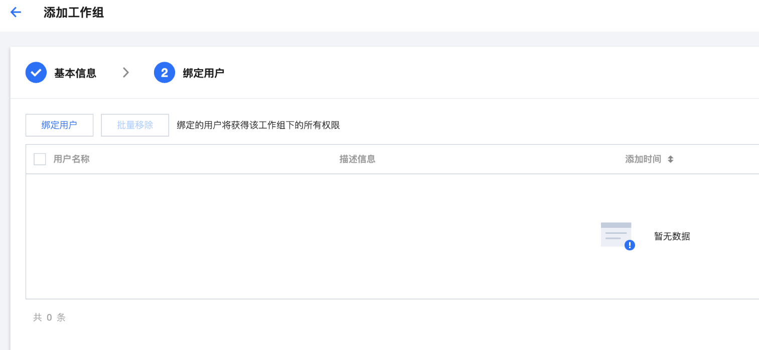 2. 绑定用户:绑定的用户将获得该工作组下的所有权限。